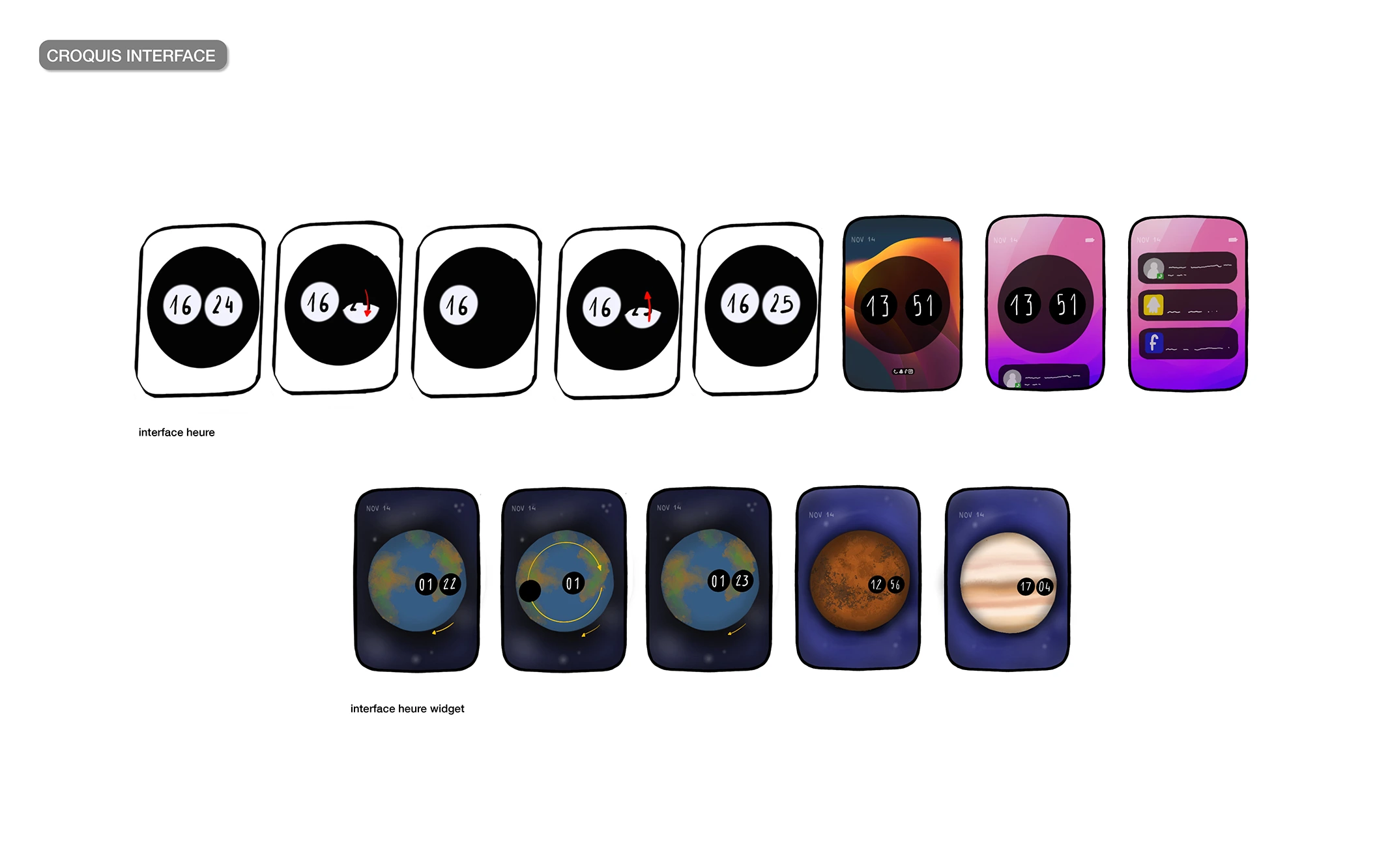 The interfaces are based on the principle of circularity, evoking both a classic clock and the Earth’s orbit around the Sun. The project also explores how to represent time, investigating how hours can be visually communicated in a small, interactive format while remaining intuitive and aesthetically pleasing.