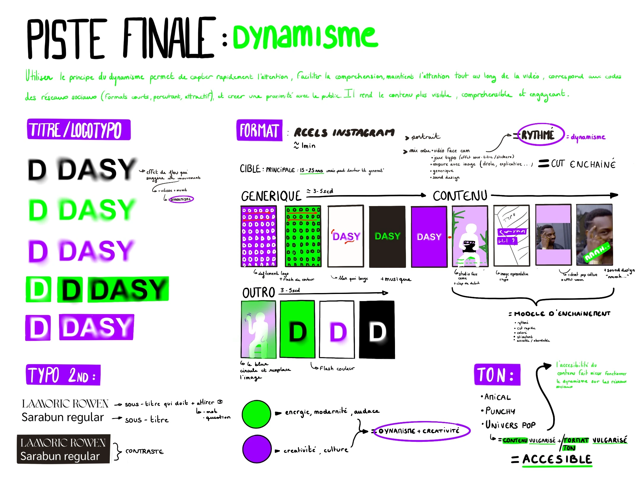 To guide my creation, I chose a rhythmic and impactful approach, inspired by media like Konbini: fast transitions, a direct tone, and lively staging of the information. The idea was to combine clarity, energy, and pedagogy to spark interest in critical typography, even for those who had never heard of it before.